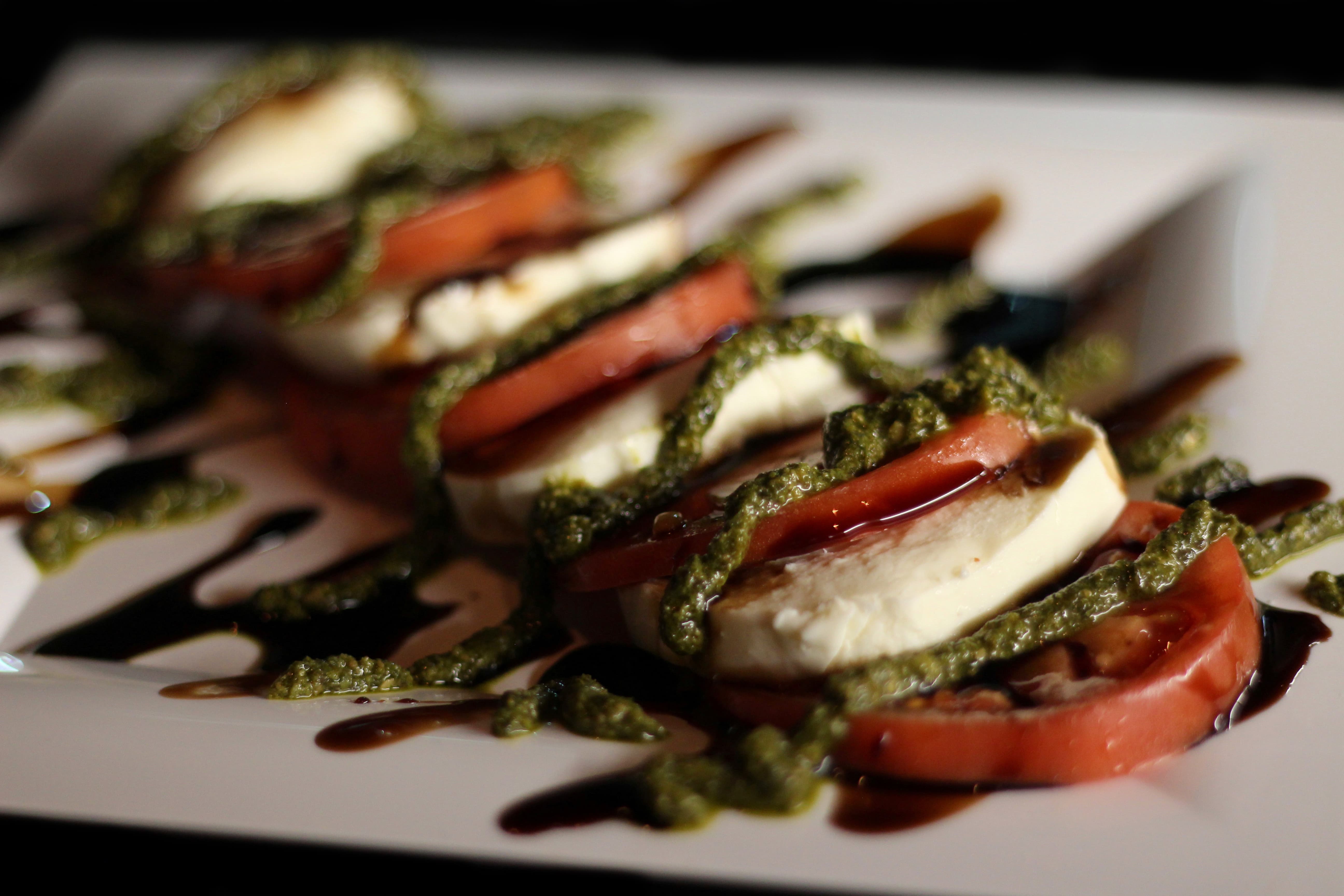 Thick mozzarella and tomato slices, pesto and house-made bourbon balsamic reduction glaze.